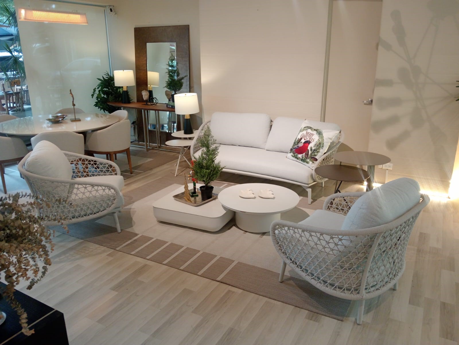 Diseño moderno con alma atemporal. Este sofá de dos puestos destaca por su estructura de aluminio y cuerda náutica otorgan ligereza y sofisticación. Los cojines desmontables, tapizados en lona, ofrecen una textura suave y resistente, son fáciles de limpiar, repelen la humedad y resisten los rayos UV. Ideal para terrazas, patios y espacios semiabiertos que combinan estilo y funcionalidad.