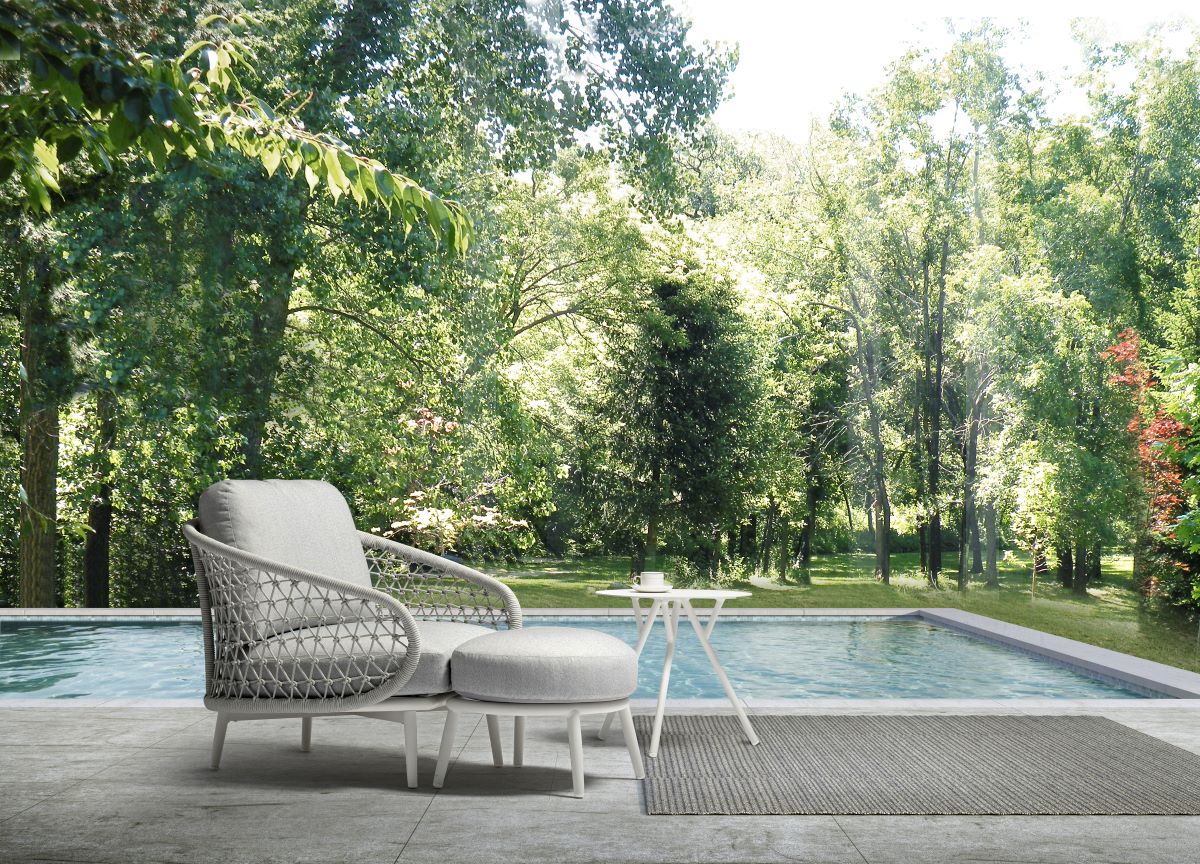 Poltrona estructura aluminio light gray, cuerda náutica light gray, tapizado en lona light gray W95*D86*H76